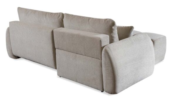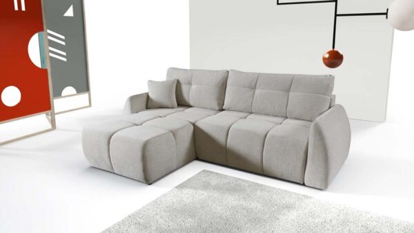Rozkładany narożnik SOHO z funkcją spania. Siedzisko wypełnione pianką HR ze sprężyną falistą, które zapewniają wysoki komfort siedzenia. Kulki silikonowe w wypełnieniu poduszek oparciowych dostosowują się do każdego kształtu ciała.  Soho można rozłożyć za pomocą automatu DL otrzymując powierzchnię spania 140x200 cm. Posiada dwa pojemniki do przechowywania pościeli. Narożnik jest uniwersalny- można zamontować na lewą lub prawą stronę.