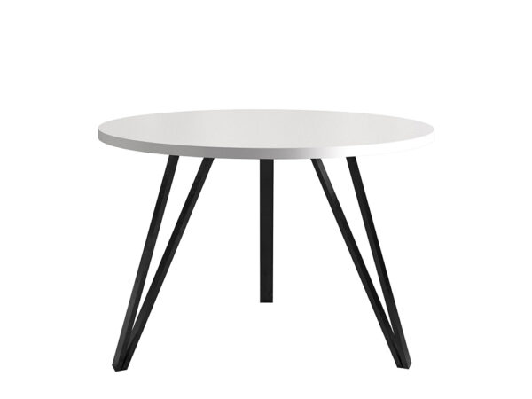 Stolik kawowy STK M15. Okrągły, nogi metalowe. Biały