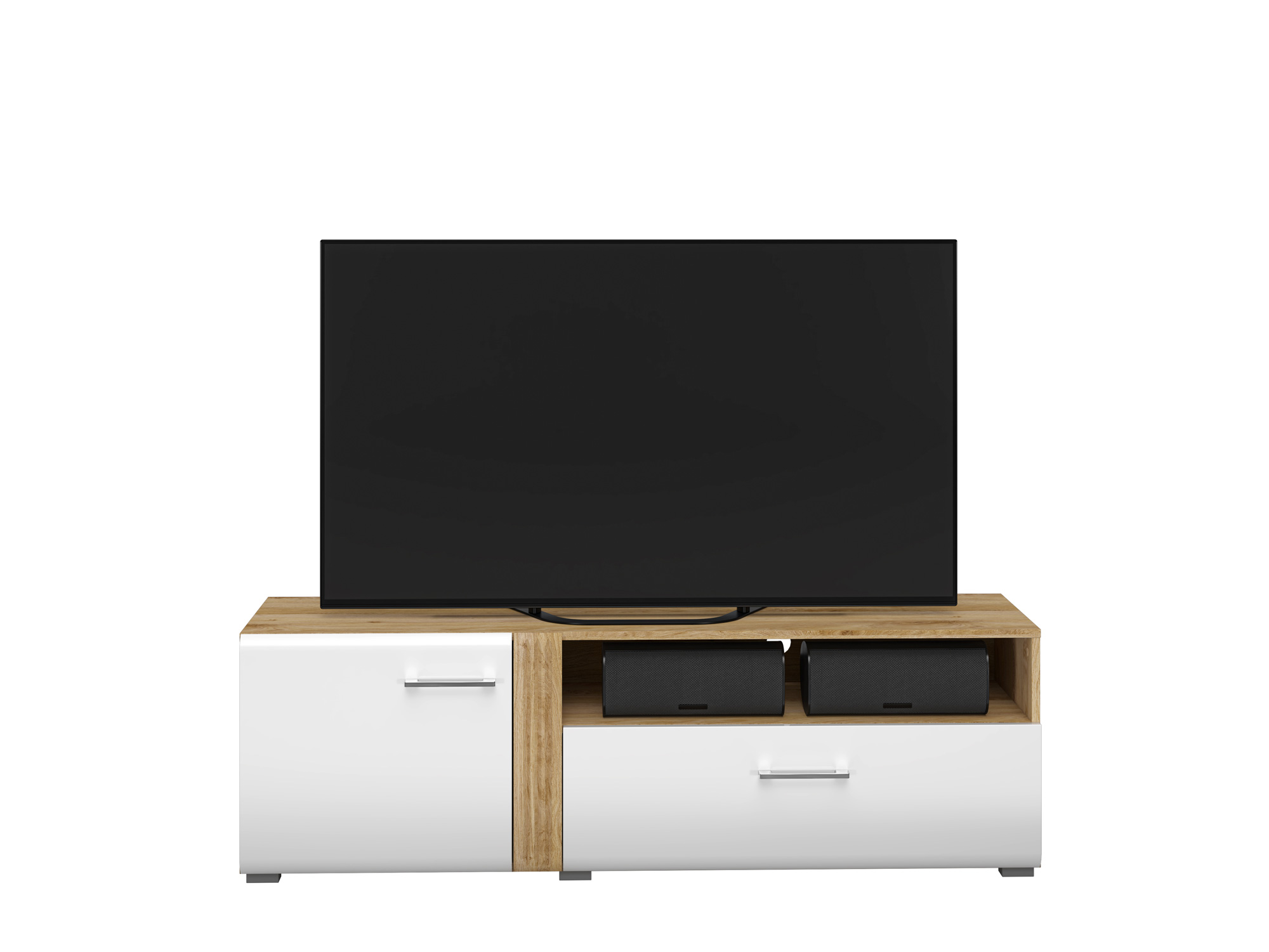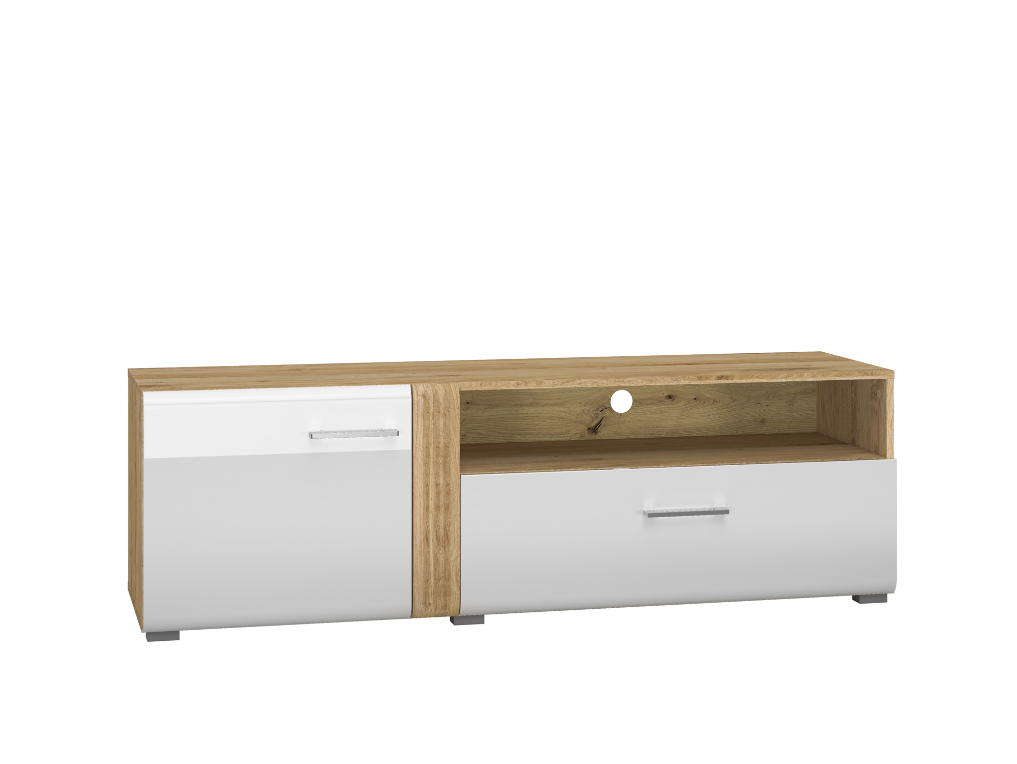 Szafka RTV Adagio 07 to doskonały mebel pod Twój telewizor. Wnęka ukryta za drzwiami to bardzo pojemna przestrzeń, która może zostać dodatkowo rozszerzona o dostawkę Adagio 08. Szuflada o zwiększonej ładowności to idealne miejsce na dokumenty lub akcesoria multimedialne. Szeroka, otwarta wnęka została zaprojektowana z myślą o miejscu na konsolę lub dekoder. Ten mebel to duet funkcjonalności i dobrego designu. Zaoblone fronty MDF, głęboko frezowane listwy w kolorze korpusu oraz uchwyty metalowe i chromowane to istota kolekcji Adagio.