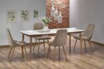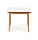wymiary: 90-190/80/75 cm, stół rozkładany, materiał: MDF okleinowany / drewno lite – bukowe, kolor: blat – biały mat, nogi – dąb lefkas