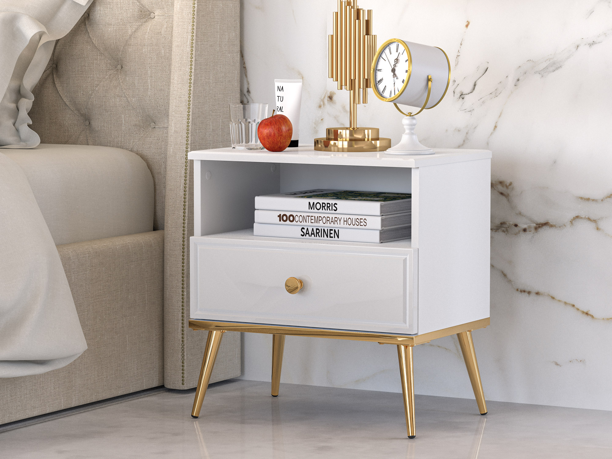 Goldin 0701 Biały alpejski/Biały połysk – szafka nocna