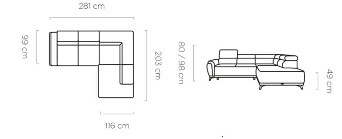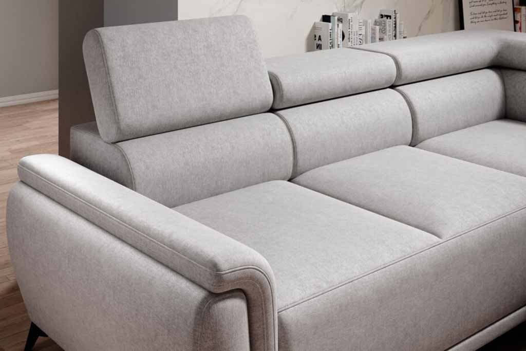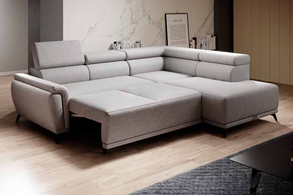 Narożnik Atlanta z systemem rozkładania Puma (dodatkowa powierzchnia spania pod siedziskiem). W siedzisku sprężyny faliste oraz pianka wysokoelastyczna HR. Wysokość samego siedziska to 49 cm. Posiada praktyczne regulowane zagłówki. Powierzchnia spania to 135×215 cm.
