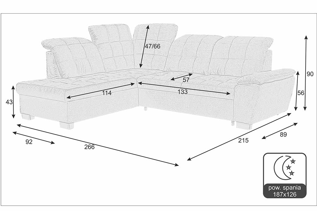 | Szerokość mebla (cm) | 266 |