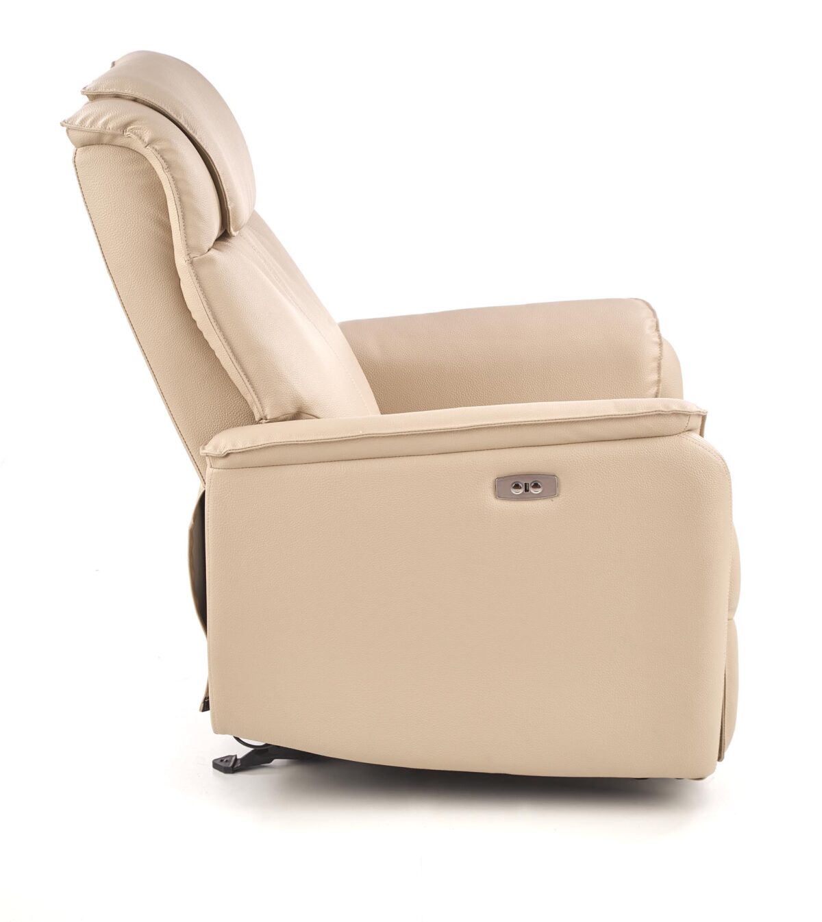 wymiary: 75/94/103/47 cm, fotel z fukcją elektrycznego rozkładania oraz fukcją kołyski, materiał: eco skóra, color: kremowy