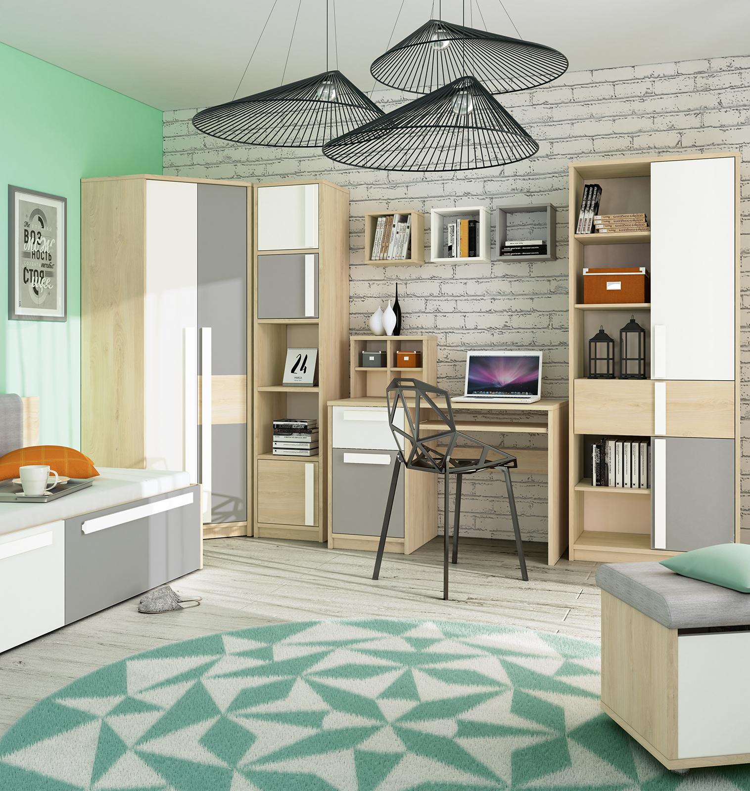 Regał DROP 0301 to nowoczesny i funkcjonalny mebel, idealny do każdego wnętrza. Wykonany z wysokiej jakości płyty laminowanej, jest odporny na zarysowania, wilgoć i wysoką temperaturę. Kolorystyka w odcieniach Buk Fjord + Biały z wstawką w kolorze Szara Platyna nadaje regałowi elegancki i nowoczesny wygląd, który doskonale komponuje się z różnymi aranżacjami wnętrz.