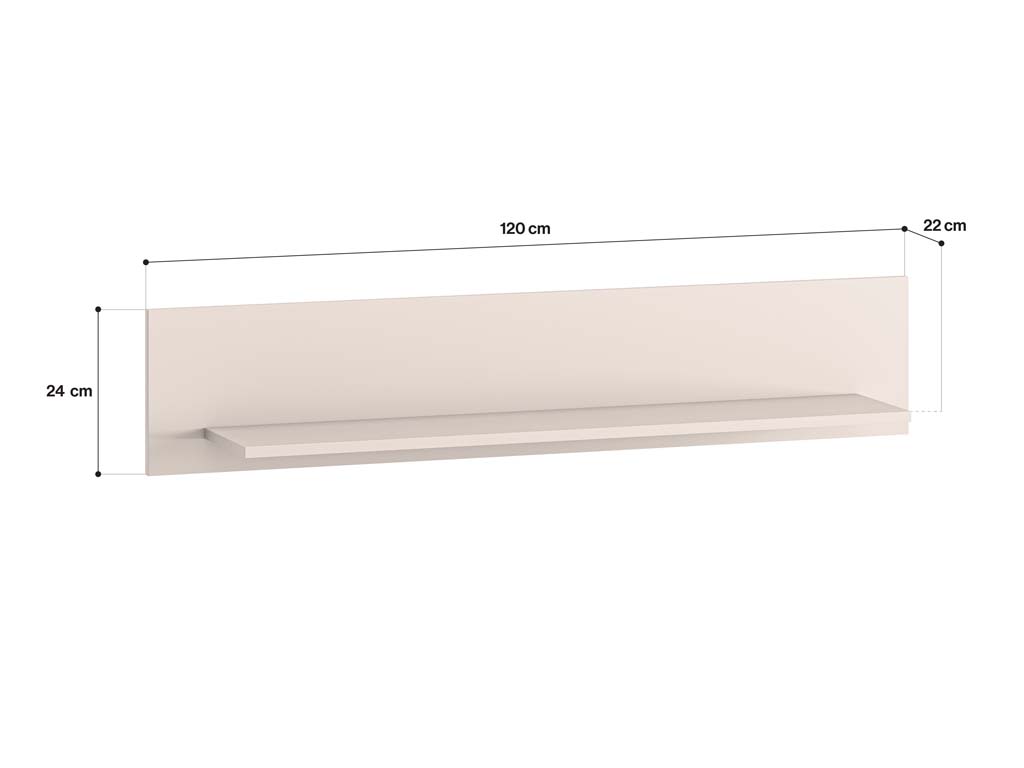 Półka wisząca SELGIN 08 to elegancki i funkcjonalny element wyposażenia wnętrza, który doskonale sprawdzi się w salonie, sypialni czy przedpokoju. Jej nowoczesny design i subtelna kolorystyka w odcieniu kaszmiru harmonijnie komponują się z różnymi aranżacjami.