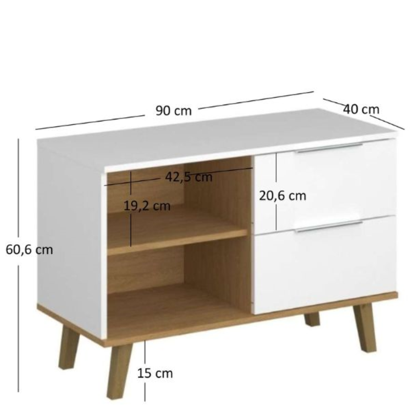 Komoda 2S/90. Szerokość: 90 cm. Wysokość: 60,6 cm. Głębokość: 40 cm