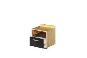 Solidna konstrukcja szafki nocnej TORINO 09 zapewnia trwałość i stabilność. Estetyczne wykończenie oraz obrzeża ABS zwiększają odporność na uszkodzenia. Praktyczne półki oferują przestrzeń do przechowywania niezbędnych przedmiotów, a pełny wysuw szuflady ułatwia dostęp do przechowywanych rzeczy, czyniąc szafkę idealnym wyborem do każdej sypialni.